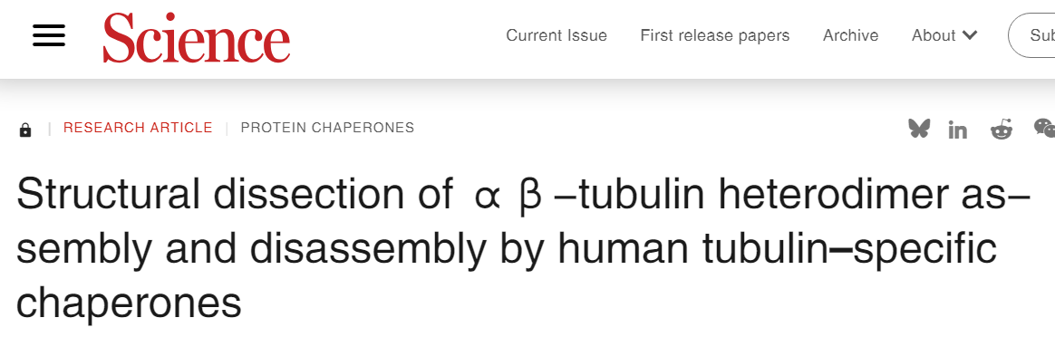 该研究以“Structural dissection of αβ-tubulin heterodimer assembly and disassembly by human tubulin-specific chaperones”为题发表在《Science》上。