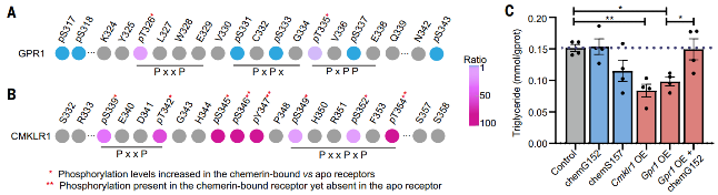 图5. GPR1/CMKLR1 的磷酸化模式与脂质代谢调控