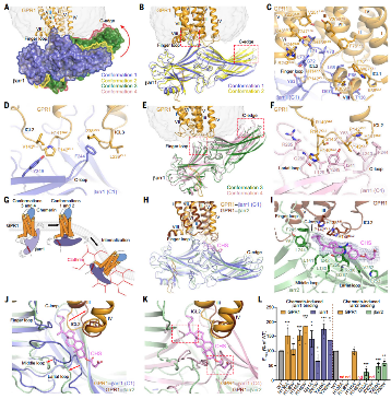 研究通过冷冻电镜首次解析了chemerin 结合态与配体游离态下,GPR1 与两种功能差异显著的 β-抑制蛋白亚型(β-arrestin 1 和 β-arrestin 2)的结合模式,从原子层面阐明了非典型GPCR的独特工作机制,为理解 “诱饵受体” 功能提供了结构依据,也为肥胖等代谢性疾病的靶向研究提供了新方向。