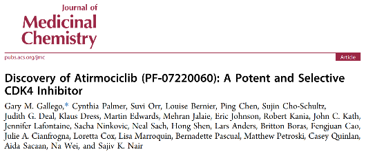 研究以“Discovery of Atirmociclib (PF-07220060): A Potent and Selective CDK4 Inhibitor”为题发表在《Journal of Medicinal Chemistry》上。