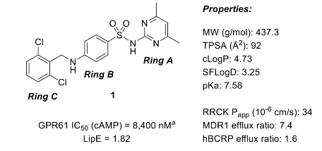 图1. 高通量筛选命中物(化合物 1)的结构及核心理化性质