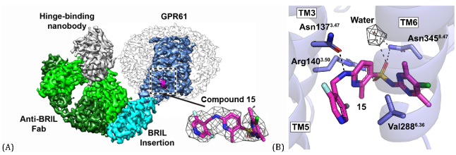 图4. GPR61 与化合物15结合的冷冻电镜结构