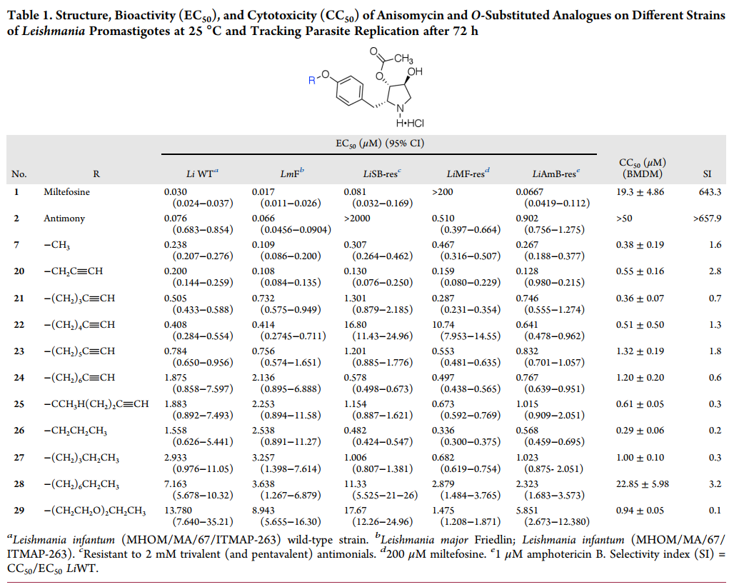 该研究以“p‐Alkoxy-Substituted Anisomycins with Potent Anti-Trypanosomiasis Activity and Expanded Modes of Action”为题发表在《Journal of Medicinal Chemistry》上。