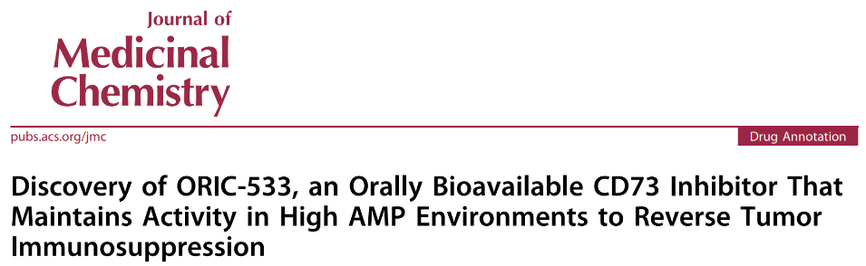 该研究以“Discovery of ORIC-533, an Orally Bioavailable CD73 Inhibitor That Maintains Activity in High AMP Environments to Reverse Tumor Immunosuppression”为题发表在《Journal of Medicinal Chemistry》上。