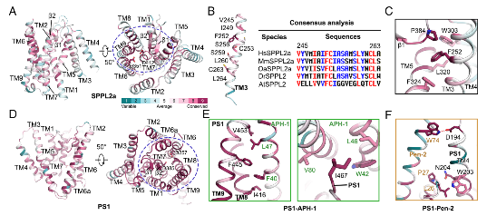 图5. SPPL2a 与 PS1 在结构保守性上呈现截然不同的分布模式