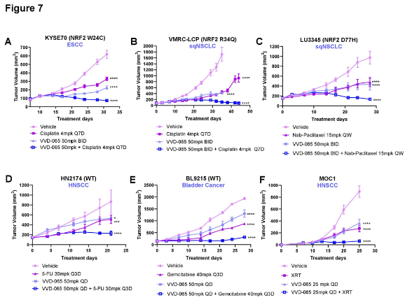 VVD-065与多种标准化疗药物或放疗联合使用时,在临床前模型中显示出强大的协同抗肿瘤效果,能显著逆转由NRF2介导的治疗耐药性。