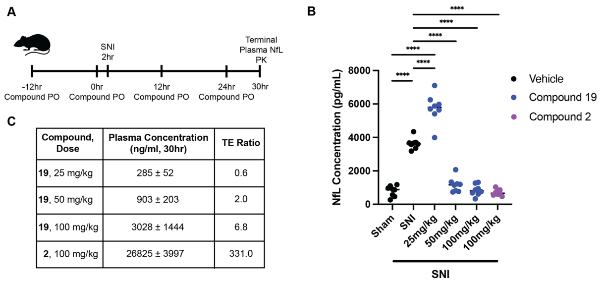 图6. 小鼠SNI 模型中化合物19 的体内疗效与低剂量反常效应