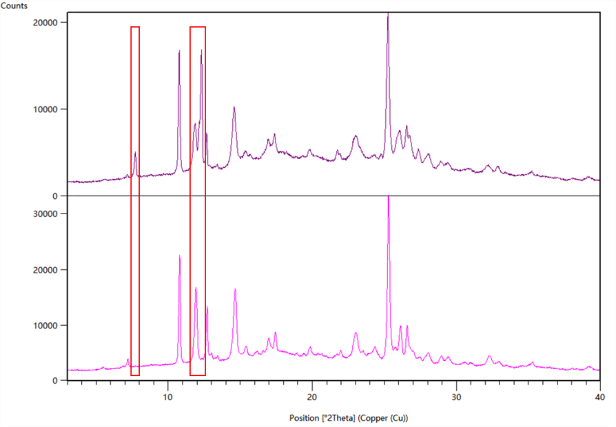 然而在研发过程中,不少团队会遇到这样的难题:自制样品的PXRD谱图中,大部分衍射峰能够与目标药用晶型对应,却多了几处无法匹配的异常峰。这种情况通常意味着,主晶型和目标药用晶型大概率是一致的,但由于工艺原因引入了少量其他晶型杂质。